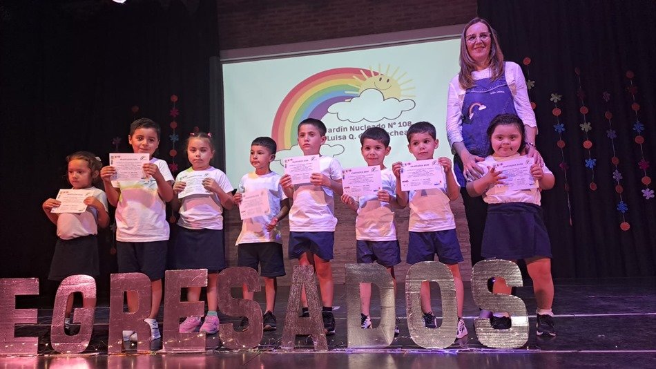 En la Casa de la Historia y la Cultura, y en dos turnos, los pequeños de salita de 5 años del Jardín Nucleado nro. 108 se despidieron del nivel inicial, para empezar primer grado en el 2026.