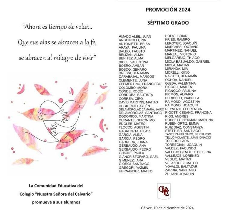 En el patio del Colegio, ese que tantos años los llenó de juegos, los alumnos de Séptimo Grado del Colegio «Nuestra Señora del Calvario» dijeron adiós a la escuela primaria.