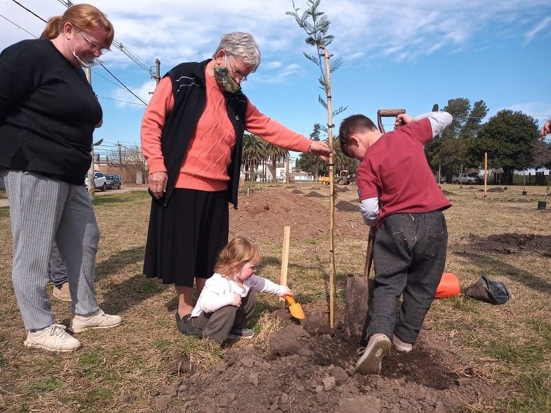 En representación de la agrupación «Custodios del Territorio», Lupe Valenti se mostró «feliz por la gran convocatoria, muy representativa», porque «plantar árboles con los más pequeños es sembrar futuro». Y por ese motivo se mostró «emocionada de ver que los chicos participen de esta actividad», en la que se plantaron algarrobos, palos borrachos y ceibos entre otras especies propias de la región.