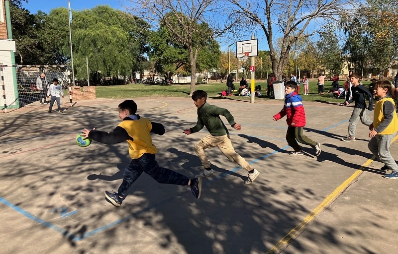 Este tipo de propuestas, en este caso con alumnos de 5to grado de las escuelas 6034, 6035, 305, 290 y 877, tiene por objetivo «que los chicos conozcan a otros compañeros, sociabilicen y hagan nuevos amigos, mientras practican el deporte, -hoy con handball- y se divierten», dijo a GálvezHOY el Profesor Luciano Amprimo, vicedirector de la institución.