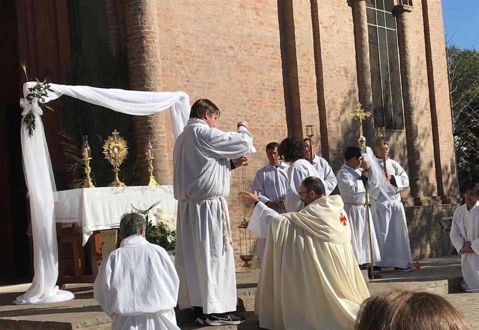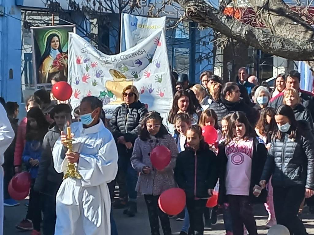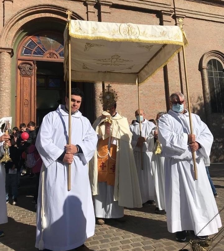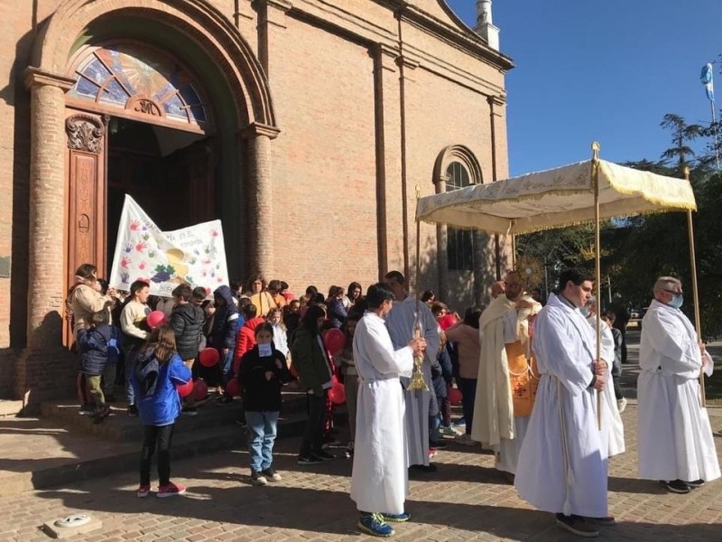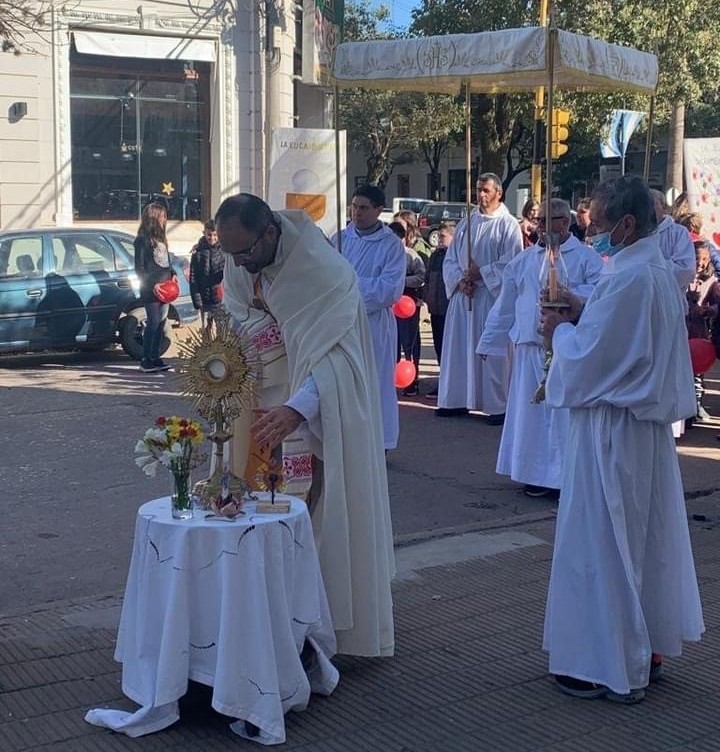 Este domingo -al finalizar la misa de las 10 de la mañana- se llevó a cabo la Procesión de Corpus Christi, una celebración que tiene lugar 60 días después del Domingo de Resurección y de la que año a año participan cientos de fieles.