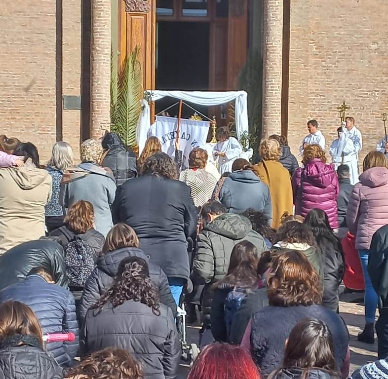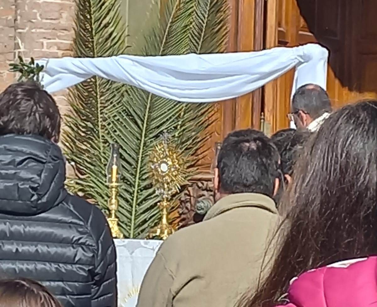 Desde la Comunidad Parroquial agradecen a todos los que colaboraron en la confección del Palio bajo el cual va la Eucaristía que fue estrenado durante esta celebración.