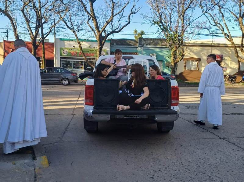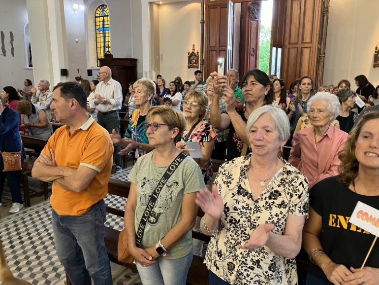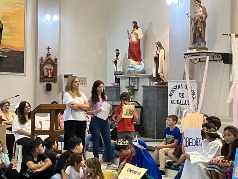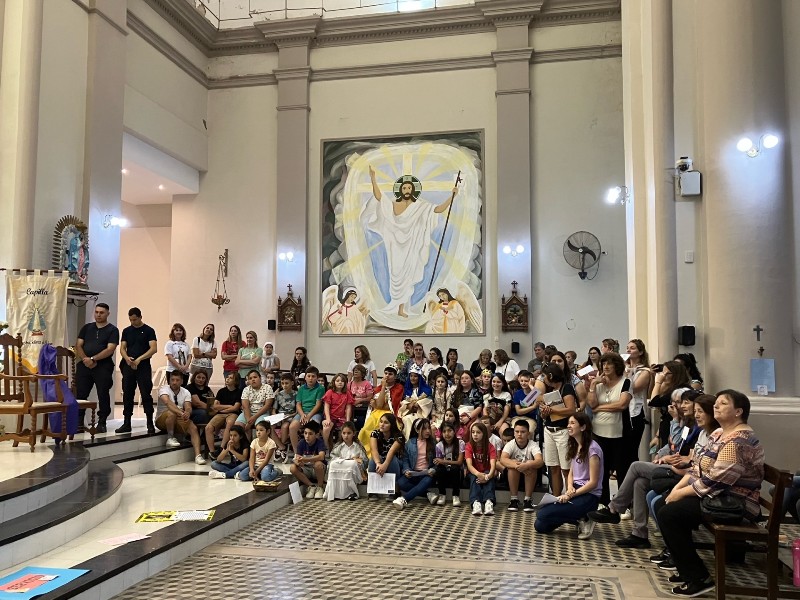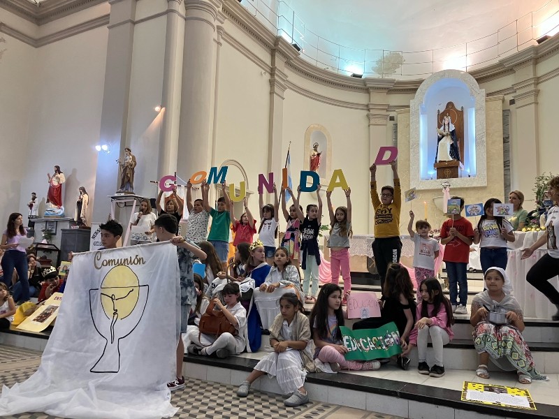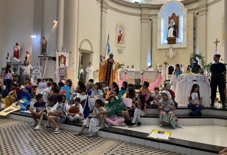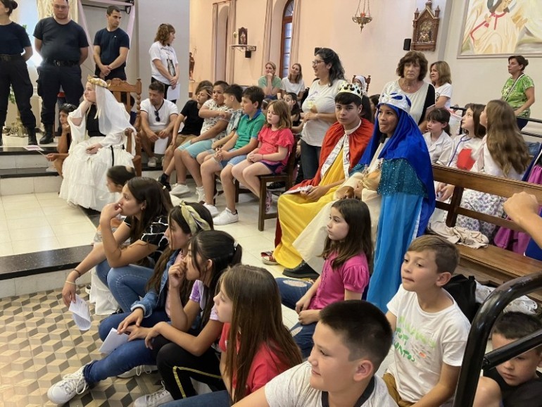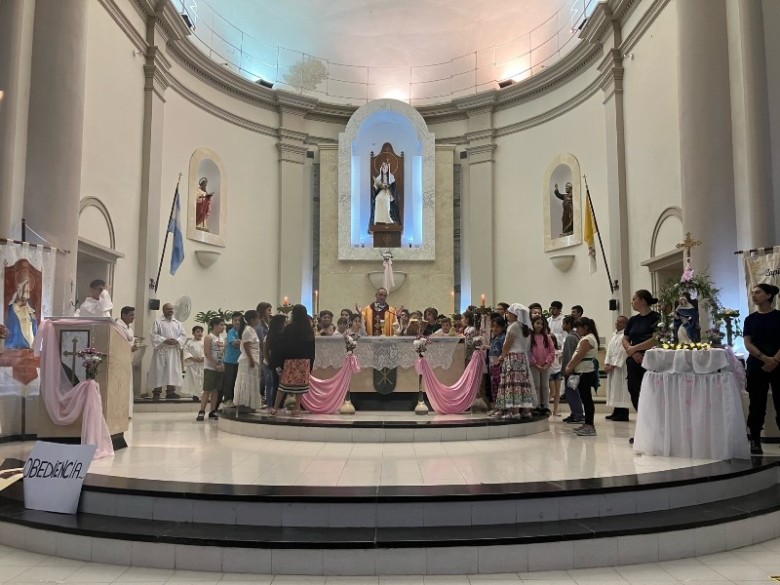 Luego de la procesión que recorrió las calles de la ciudad, saliendo desde la Capilla de Luján para arribar a la Parroquia se celebró la misa a cargo del Padre Carlos Magnano y que contó con la participación de los niños que están haciendo la Catequesis.