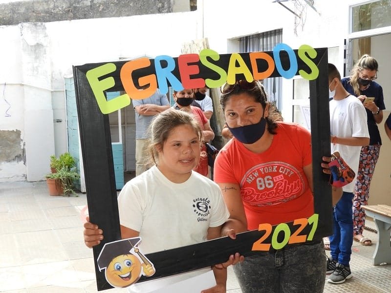 La despedida a los Egresados 2021 de la Escuela Especial N° 2041 «Doctor José Gálvez» se llevó a cabo durante la mañana de este jueves en el edificio de la institución. Alumnos del Nivel Primario y de Formación Integral recibieron sus diplomas en un acto del que participó la comunidad educativa de la entidad escolar junto a las familias de los egresados.