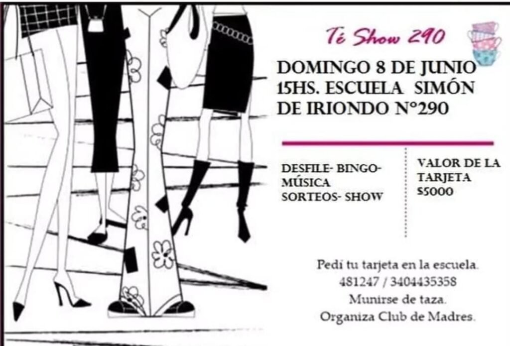 El costo de la tarjeta para el tradicional evento es de 5.000 pesos. Para esa tarde, «aparte del té, tenemos una gran variedad de tortas dado que todos los años las familias colaboran con riquísimas tortas, un show increíble que no se pueden perder, y desfile, por supuesto, de «Piensa en Mí» y de «Glamour Femme», detalló Sandra, añadiendo que «en cuanto a los bingos, que vamos a vender uno por 2.000 y 4 por 3.000 pesos, agradecemos a todos los comercios que nos están brindando su obsequio».