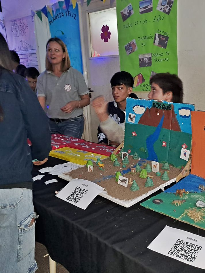 En la expo, ubicada en pasillos y salones de la institución, pudieron verse «los proyectos de los chicos que están en el ciclo básico con físico-química, geografía también, literatura. En cada materia, eligieron los alumnos qué exponer. Después, en el ciclo superior, están exponiendo por ejemplo una casa inteligente con arduino, con sensores, después tenemos un proyecto de riego artificial que lo hizo un alumno de sexto año, tenemos la programación de los robots que nos donaron el año pasado, tenemos realidad virtual… es decir, todo en base a lo que es la tecnología hoy en día, e inteligencia artificial».