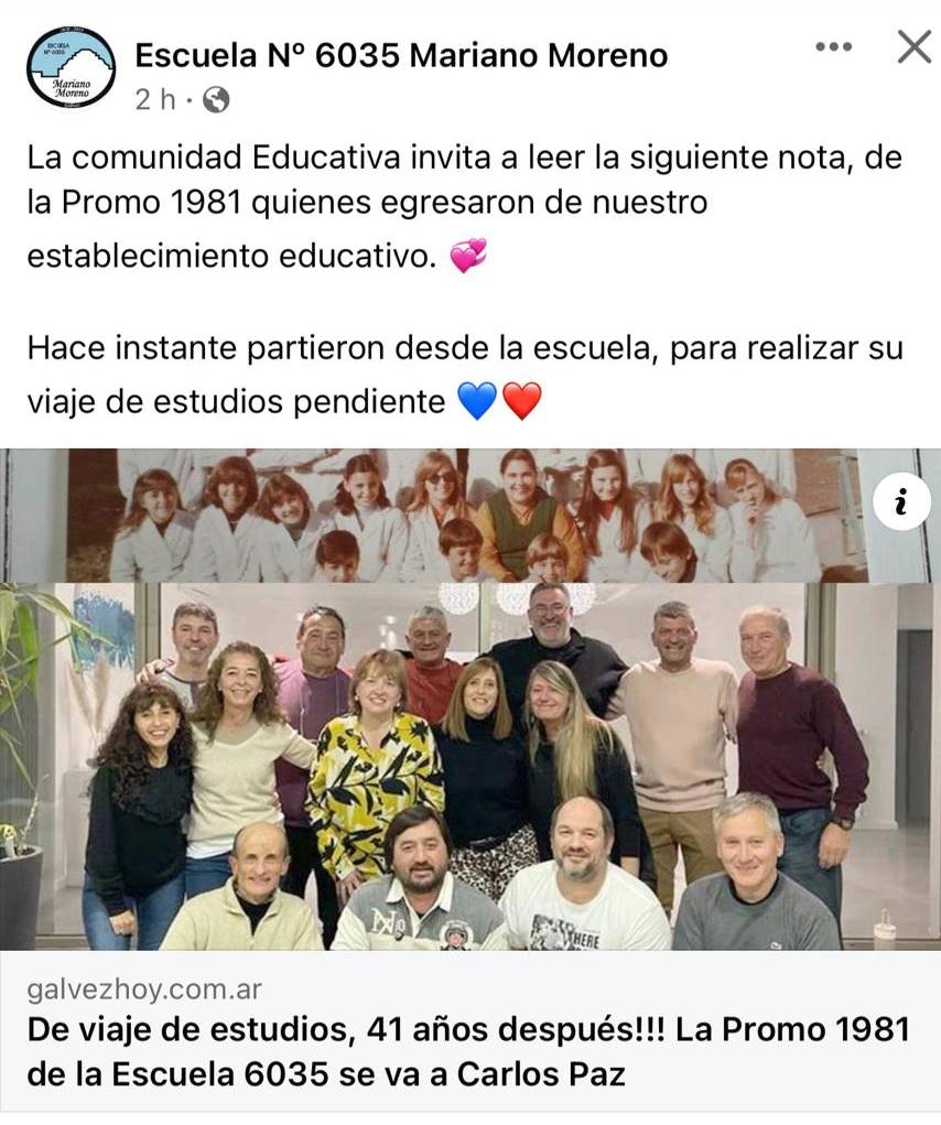 «Después de 40 años y no estar mucho juntos, poder vivir lo que vivimos fue maravilloso«, sintetizó Betina Ortiz, una de las integrantes de la promo 1981 de la Escuela Nro. 6035 que viajó a Villa Carlos Paz en viaje de estudios, 41 años después (VER NOTA ANTERIOR https://galvezhoy.com.ar/de-viaje-de-estudios-41-anos-despues-la-promo-1981-de-la-escuela-6035-se-va-a-carlos-paz/ ).