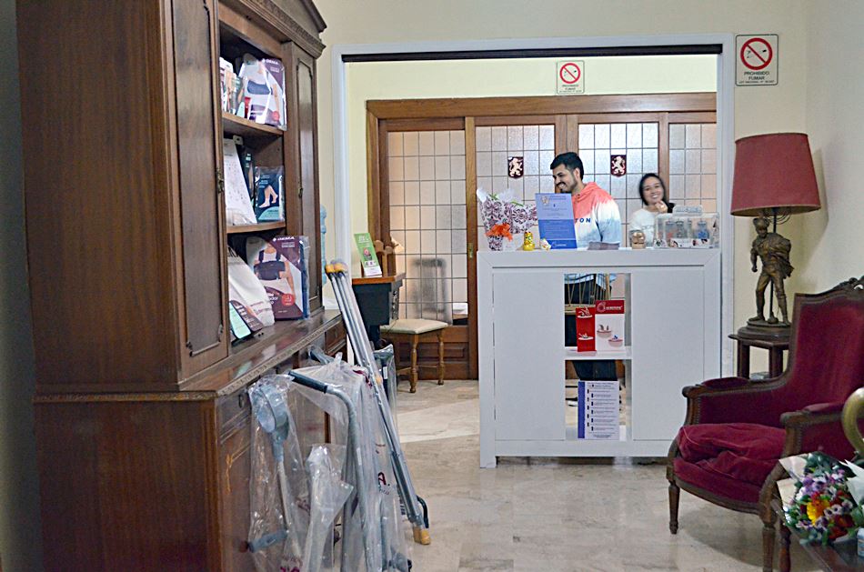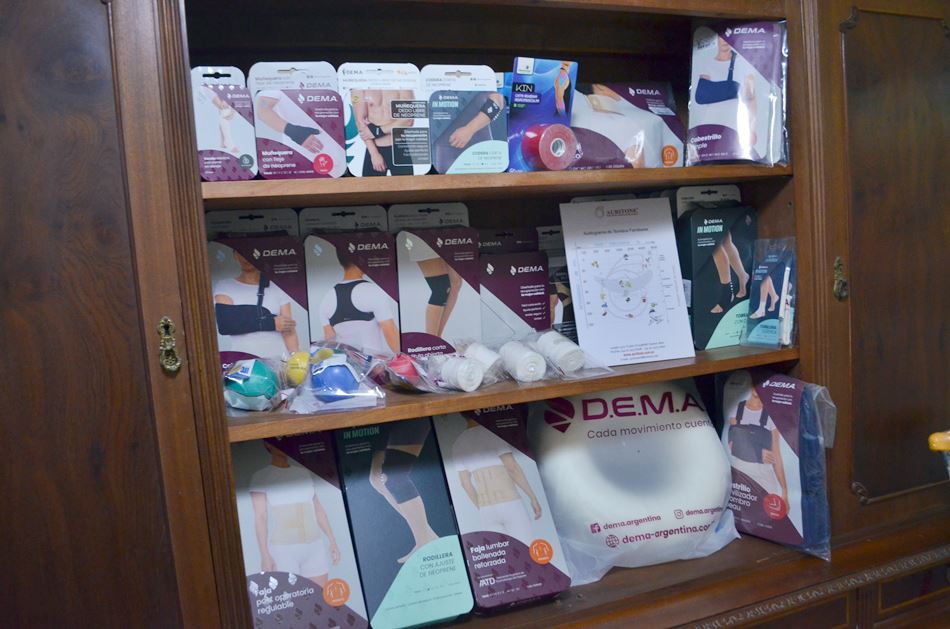 En la hall de entrada a los consultorios, además, junto a su esposo Claudio Bertoncini la profesional incorporó artículos de ortopedia, «donde van a poder llevarse lo que necesiten, seguramente con la indicación médica o de un kinesiólogo… Contamos con todo lo que necesita en el rubro, como así con todos los planes de pago y tarjetas».