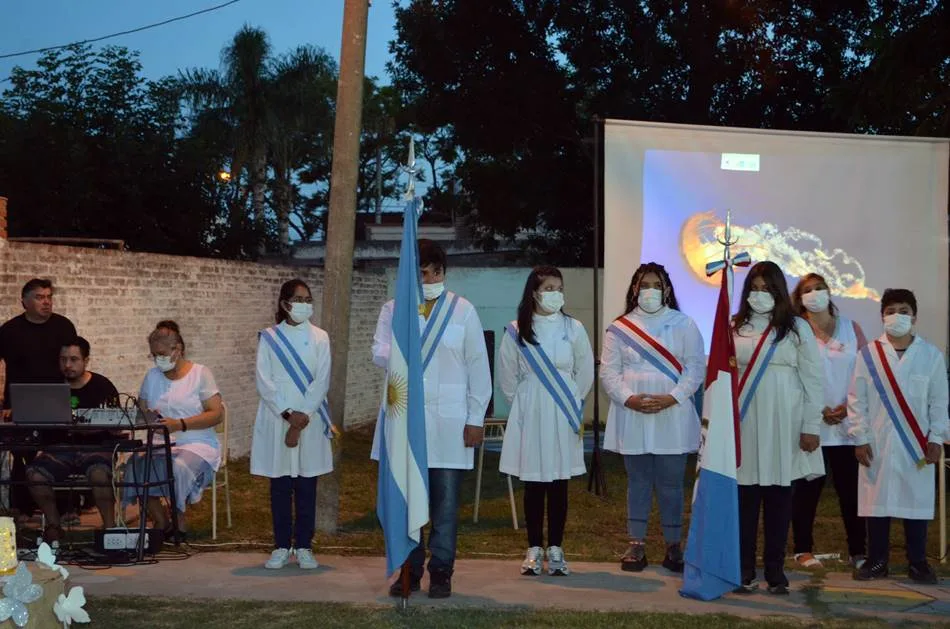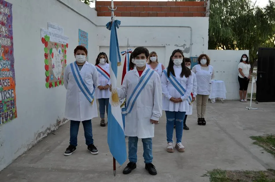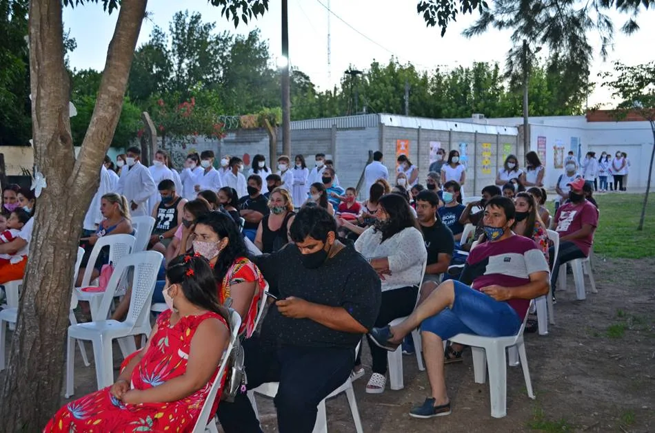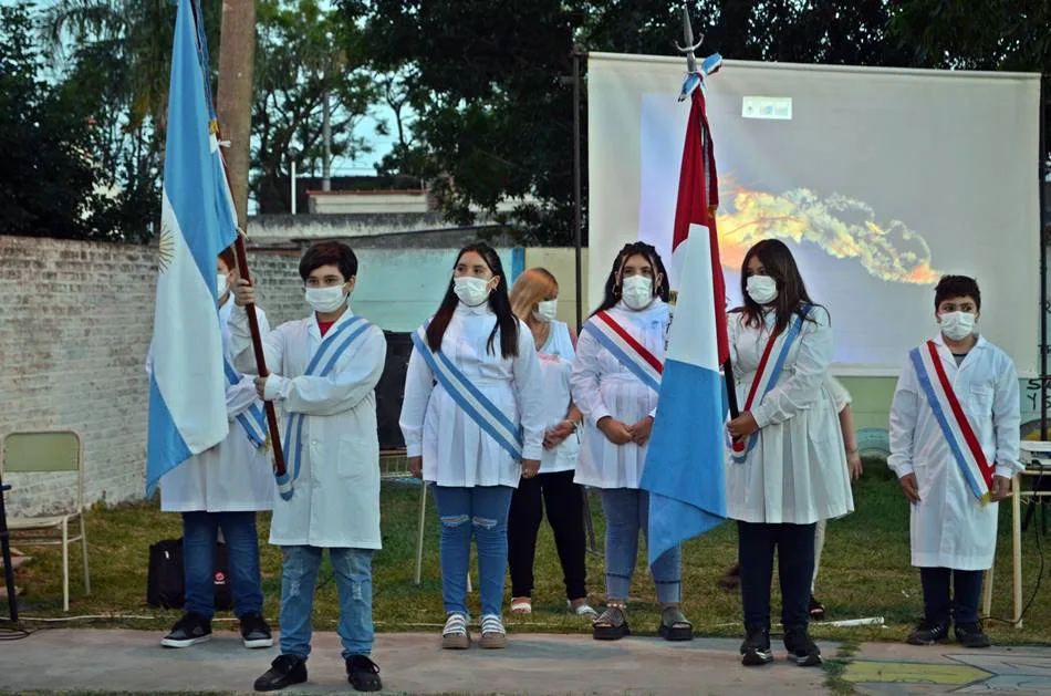 En el patio del establecimiento educativo, docentes y familias acompañaron en su acto de colación a los egresados 2021 de la Escuela Nº 877 «Domingo F. Sarmiento».