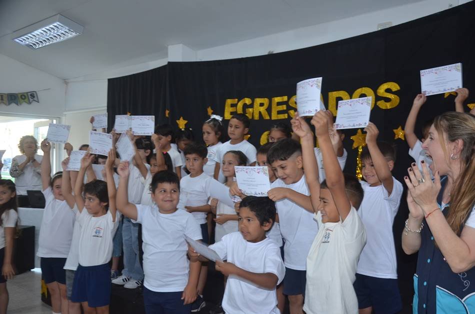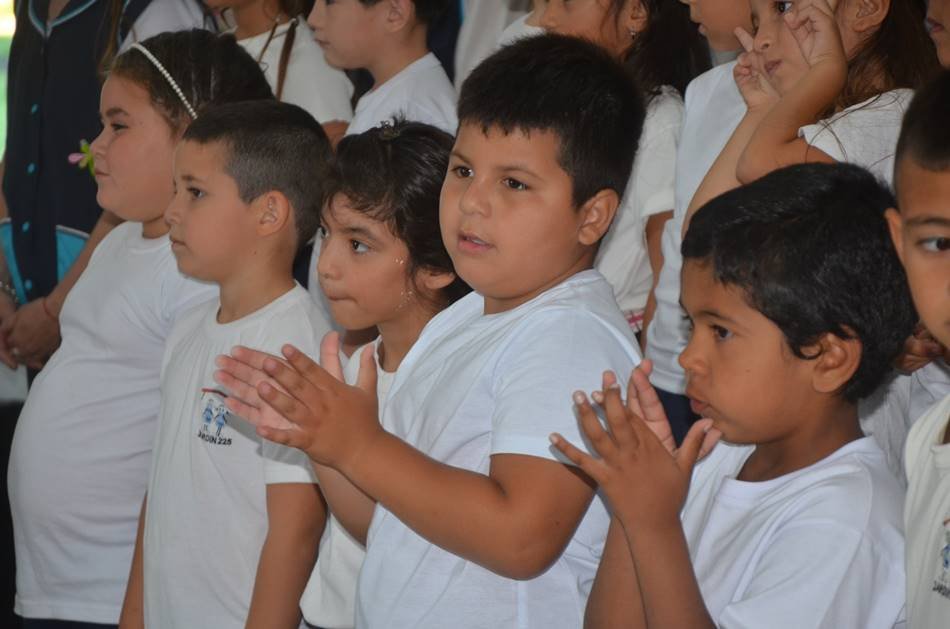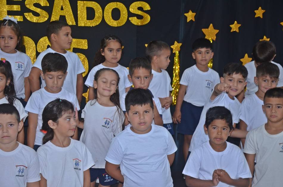 En tres turnos, los peques del Jardín Nucleado nro. 225 recibieron este lunes, sus diplomas de finalización de nivel inicial. Los despidió con cariño la seño «Cari» Quaranta, directora del establecimiento educativo, y al cierre de cada acto, los niños entonaron una canción como sorpresa para sus papás. FELICES VACACIONES y LO MEJOR PARA PRIMER GRADO, HERMOSOS!!!