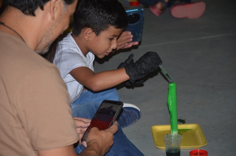 Pero el obsequio no lo es todo. En la previa, chicos y grandes siempre disfrutan de una propuesta lúdico-pedagógica diferente. En esta oportunidad, padres e hijos jugaron en el laboratorio e hicieron volcanes «caseros» de la mano de «ESPACIOS DIDÁCTICOS», taller de ciencia de la docente Ivana Cignetti y equipo, quienes también acercaron cenizas volcánicas y distintos tipos de elementos que observaron en el microscopio. También volaron un cohete, recibiendo además las instrucciones para realizar el experimento en casa.