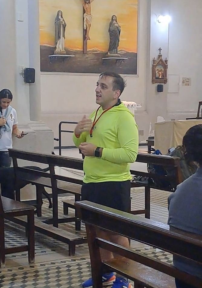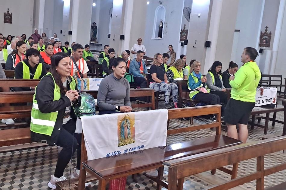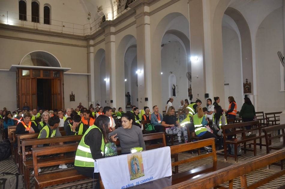 A las 5:30 todos se encontraron fuera de la Parroquia, y tras el repaso de lista de los organizadores, ingresaron al templo donde el padre Salvador les dio la bendición. El sacerdote también marcha a pie junto al grupo, y a su vez todos son acompañados por el grupo de colaboradores en distintos vehículos como con la policía local.