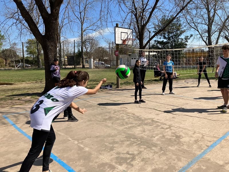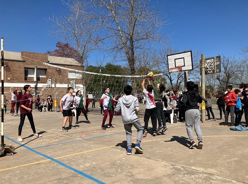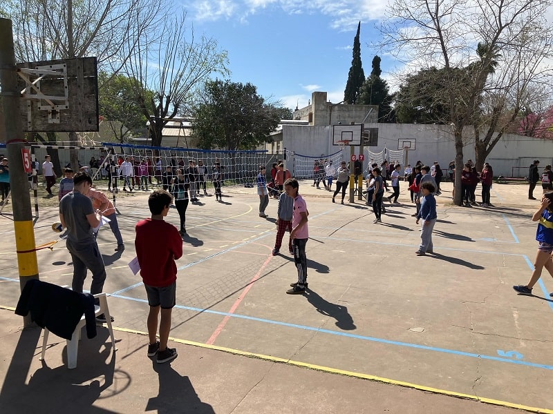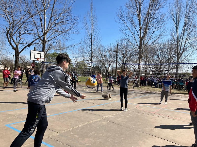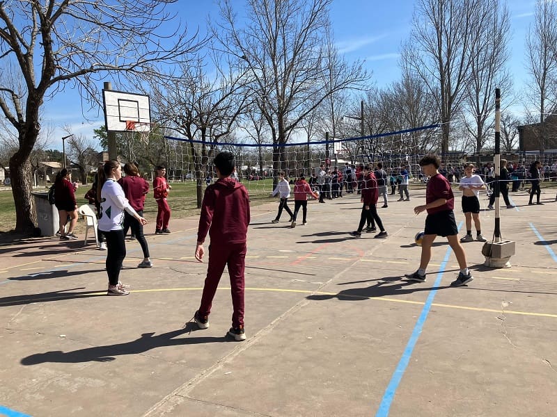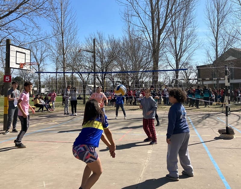Los partidos, que no son competencia y se desarrollaron desde la 9:30 hasta las 14 horas, fueron mixtos con dos varones y dos nenas conformando los equipos «y también alumnos de 5° año de la Escuela Superior de Comercio oficiaron de árbitros en una actividad articulada», comentó a GálvezHOY el Profesor Luciano Amprimo, Vicedirector del Centro. En la pista, además, se habilitó un sector de juegos.