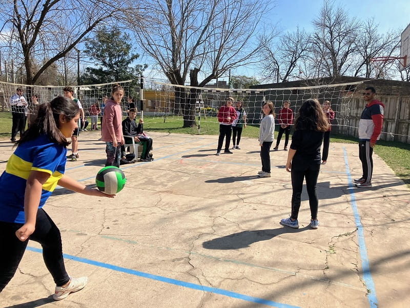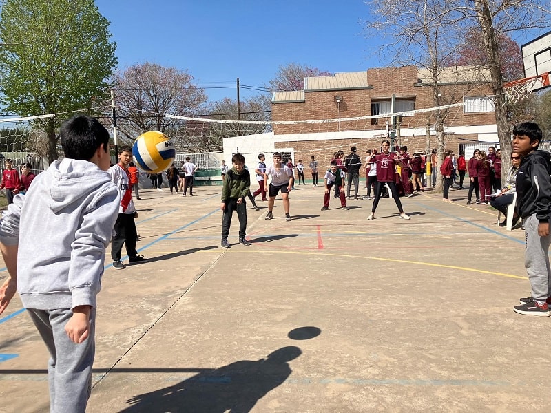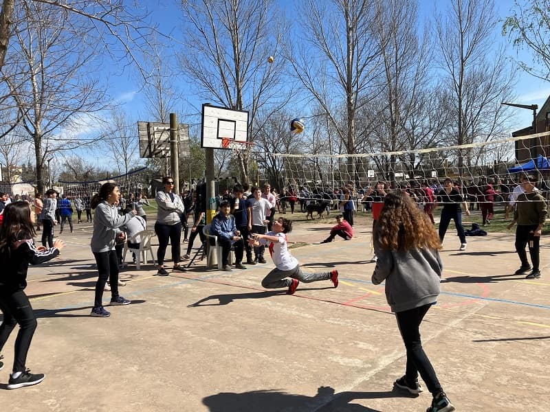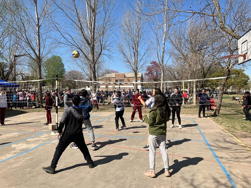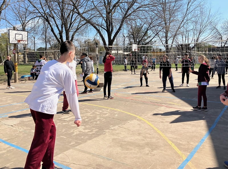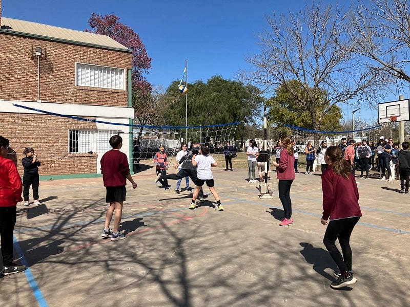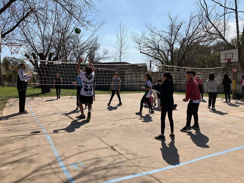 Los partidos, que no son competencia y se desarrollaron desde la 9:30 hasta las 14 horas, fueron mixtos con dos varones y dos nenas conformando los equipos «y también alumnos de 5° año de la Escuela Superior de Comercio oficiaron de árbitros en una actividad articulada», comentó a GálvezHOY el Profesor Luciano Amprimo, Vicedirector del Centro. En la pista, además, se habilitó un sector de juegos.