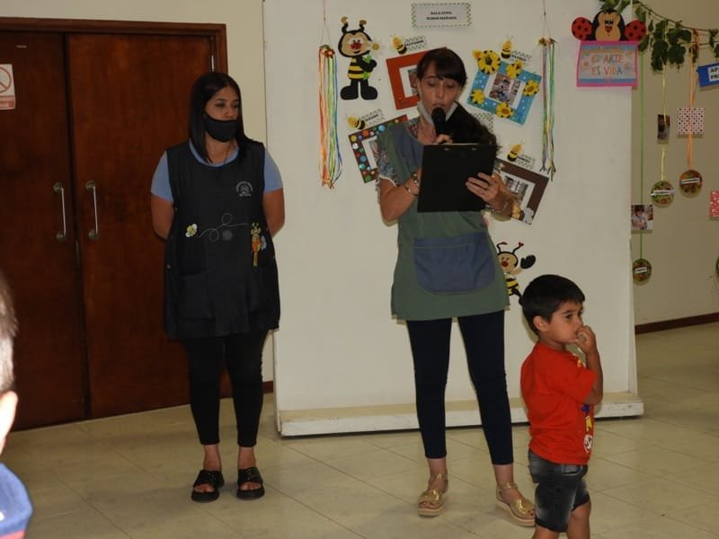 Con esta introducción se dio apertura a la muestra donde se exhiben todos los trabajos de las diferentes salas con las seños y aquellos realizados en las áreas especiales de plástica en conjunto con música.