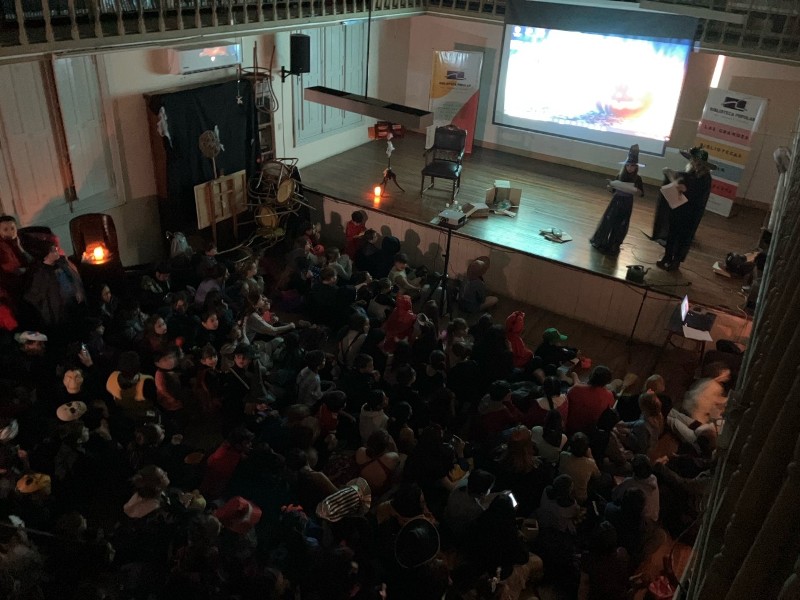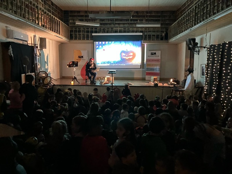 Cuentos de terror para los más chicos, fue la propuesta que surgió desde la Comisión de la institución y que logró colmar la gran sala de niños y niñas que disfrutaron de la literatura infantil del género de terror.