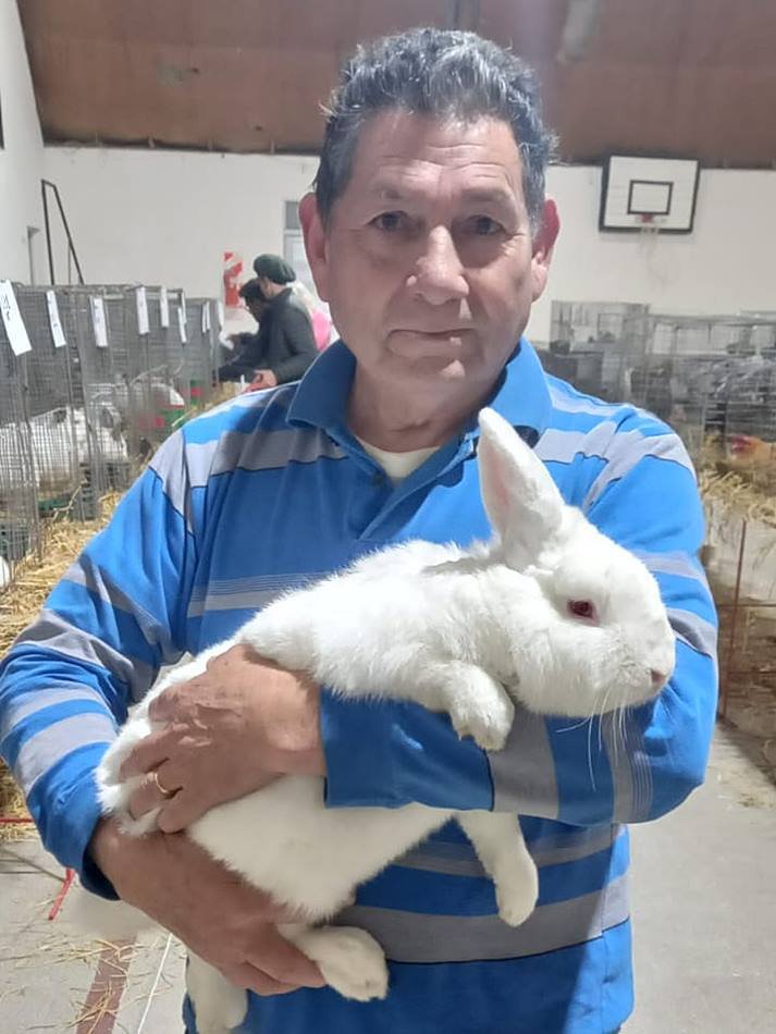 Cabe destacar que Miguel Orellano es referente en Argentina en la cría del conejo neozelandés blanco (el de ojos rojos), una raza que está desapareciendo y que Miguel, junto a otros criadores, están tratando de mantener, logrando excelentes animales año a año. En San Martín recibió incluso importantes elogios del jurado por lo prolijo y mansos de los ejemplares que presentó… felicitaciones!!!