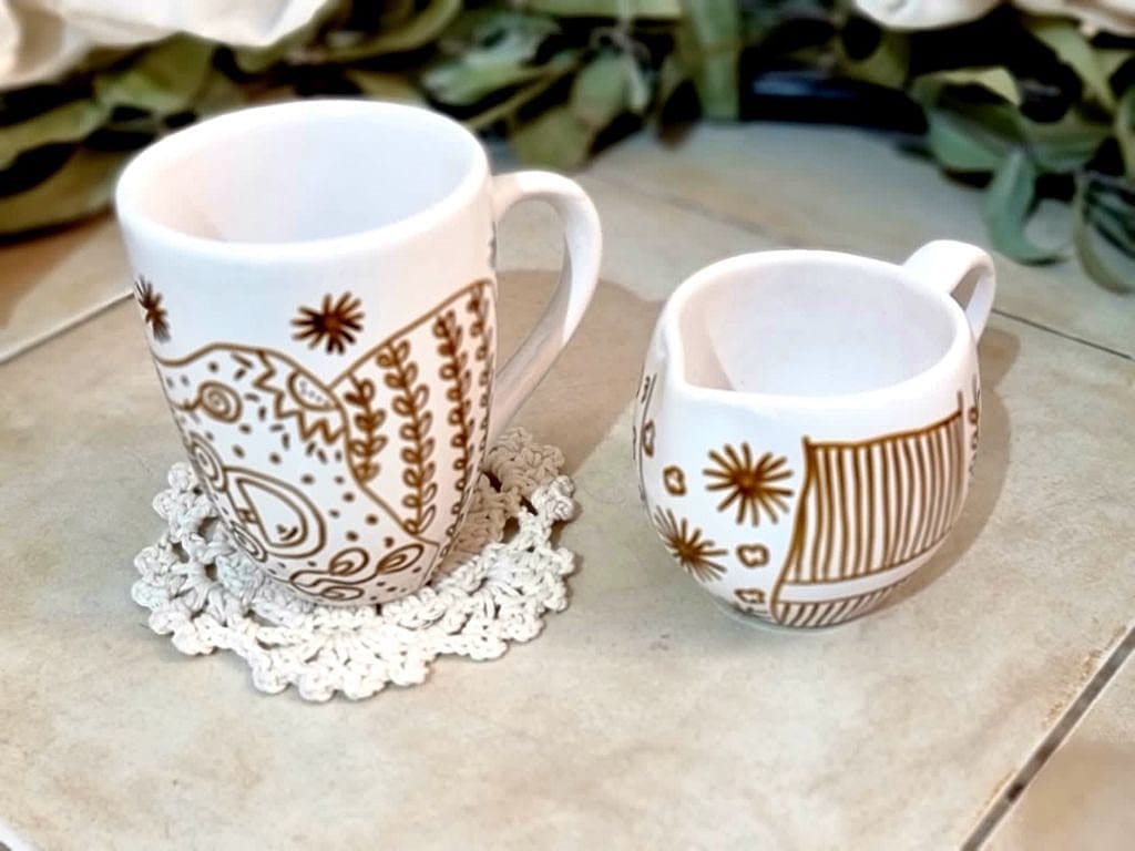 «Pensado para vos» – Hanna Oltarz pinta sus piezas de cerámica a mano. Cada diseño es único e irrepetible, utiliza fibrones y pinturas específicas para esta técnica, y los cocina en horno doméstico aplicando barniz protector.