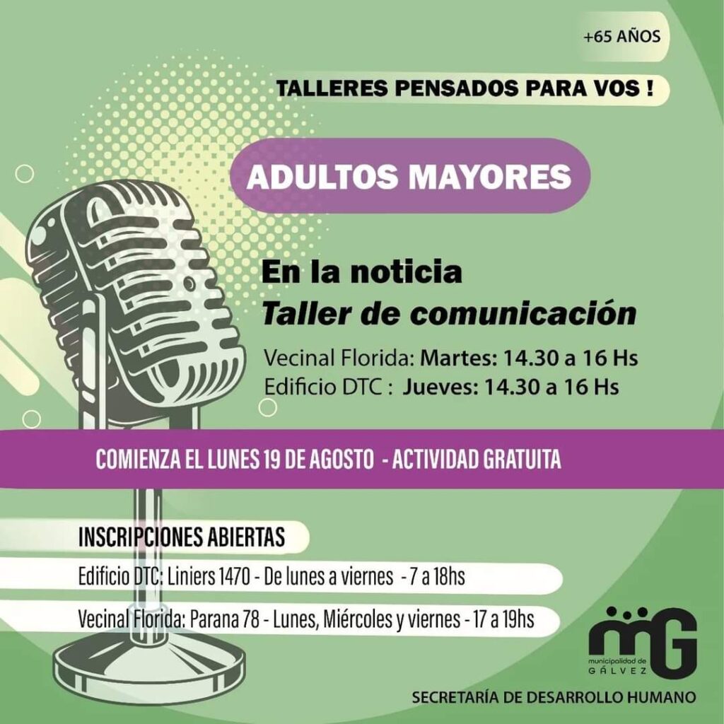 Por un lado el taller de comunicación, que estará a cargo de la licenciada en Comunicación Social Lorena Morichi, tiene como objetivo «dar un lugar donde el adulto pueda sociabilizar, rescatando saberes y noticias de su historia y un lugar donde puedan expresarse, así como generar un espacio de capacitación digital porque entendemos que quizá no todos tienen acceso al mundo de la tecnología o no tienen el conocimiento para hacerlo», expresó la funcionaria, siendo otra de las ideas la realización de un taller de radio.