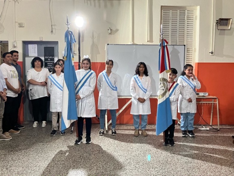 Durante el acto se dieron a conocer los alumnos que serán los encargados de portar las banderas el próximo ciclo lectivo 2024. La abanderada de la Bandera de la Nación, será la alumna Briana Ferreyra, acompañada Pilar Tevez, Naiara Ramírez Pozzo. En tanto que el encargado de portar el pabellón de la Provincia será Jankiel Kobiak junto a los escoltas Antonia Ledesma y Naiara Orellano.