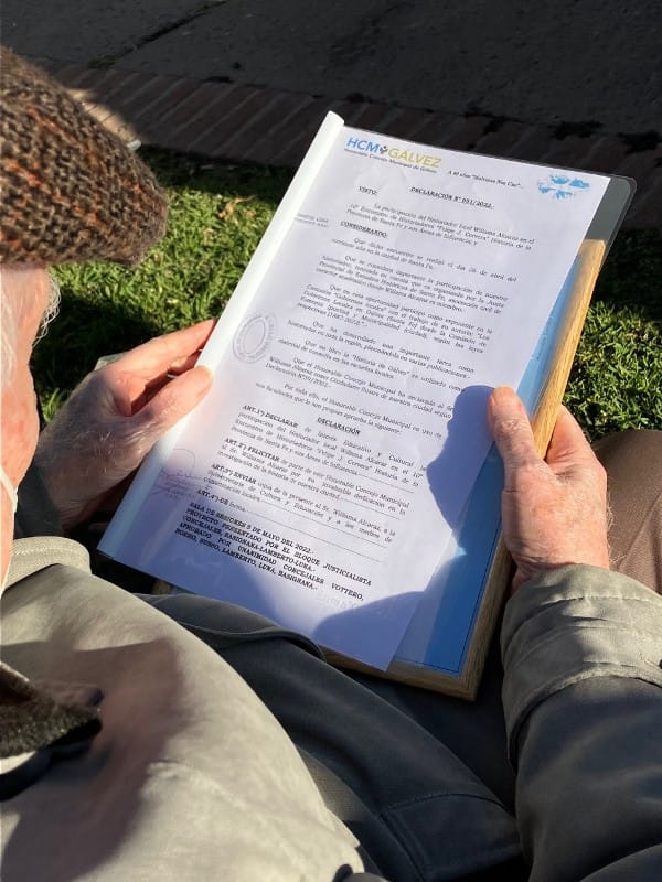 El acto contó con la presencia de Alcaraz a quien los integrantes del Bloque Justicialista -Martín Luna, Gustavo Lamberto y Hugo Basignana- hicieron entrega de una Declaratoria de Interés Educativo y Cultural por la participación del historiador en el 10° Encuentro de Historiadores «Felipe J Cervera» Historia de la Provincia de Santa Fe y sus Áreas de influencia.