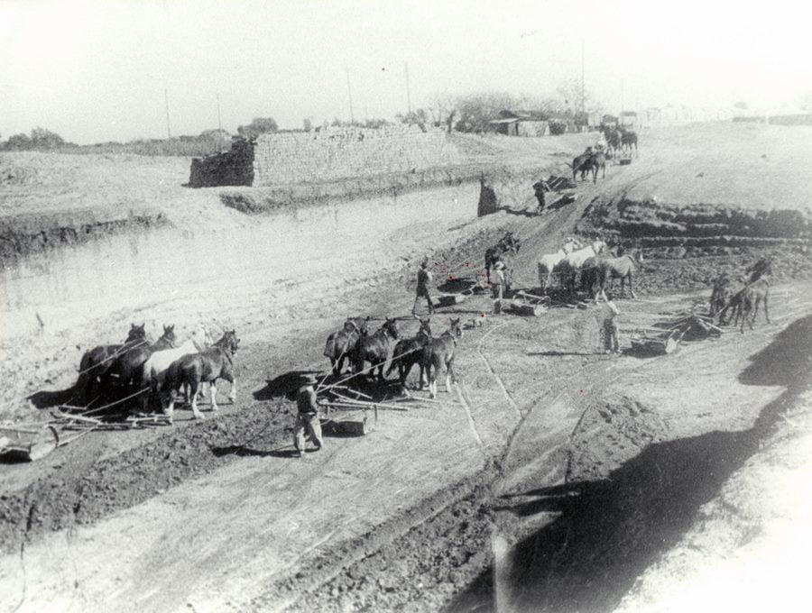 Foto 1: Momentos de la construcción del depósito de quesos en Gálvez, año 1946.