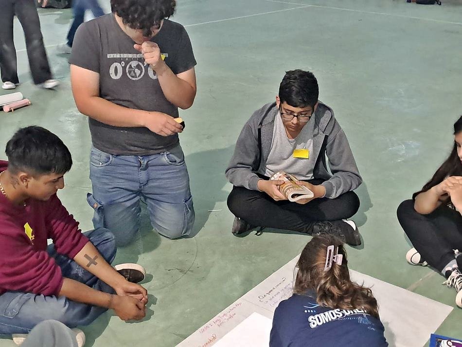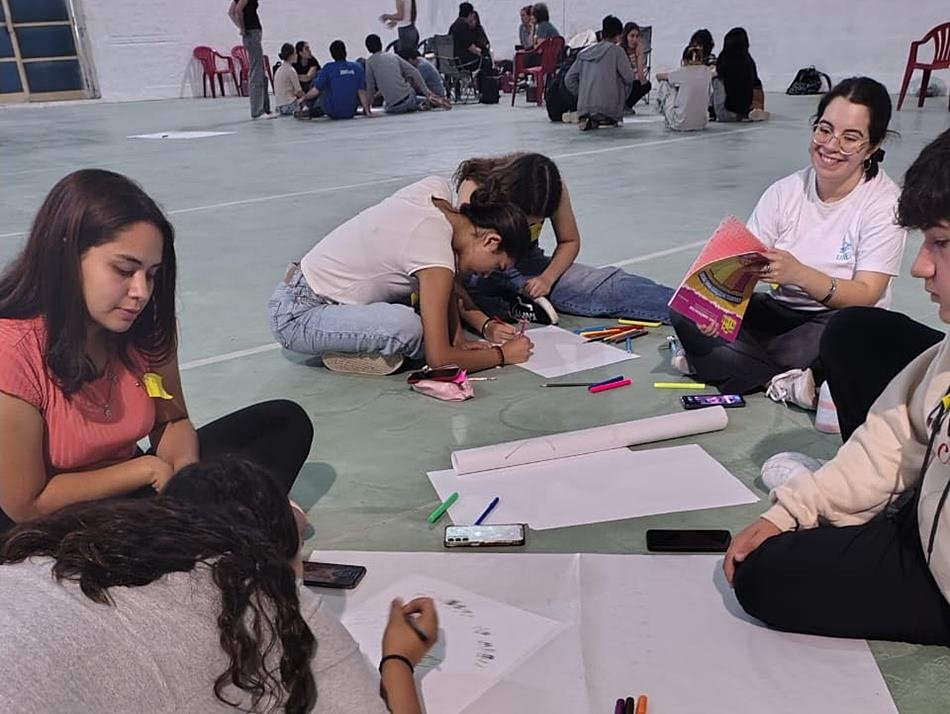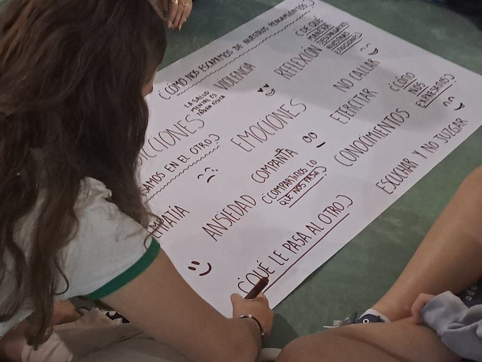 Para coordinar este encuentro de trabajo, llegaron a la ciudad estudiantes de la carrera de Comunicación Social de la UNER (Universidad Nacional de Entre Ríos), «quienes tomaron la aposta y están organizando con los jóvenes hoy presentes la actividad. La Facultad de Ciencias de la Educación de la UNER tiene un dispositivo que es Tramando Medios, y que lo hacen desde la Secretaría de Extensión Universitaria, a cargo de Karina Arach», señalaron, en tanto que la docente explicó: «La experiencia Tramando Medios, o Maratón Comunicacional, es un dispositivo cuya dinámica es para hacer debate y construcción de piezas comunicacionales. Hoy, particularmente, estamos aquí en la ciudad de Gálvez con chicos de 2do. a 5to año de la carrera, debatiendo todos y todas sobre salud mental… Tramando Medios, lo que persigue es que las y los estudiantes puedan tomar la palabra. Los jóvenes no son apáticos, sino que, en este caso, se sentaron hoy acá en la ciudad de Gálvez, en un día de lluvia, viernes, casi cerrando el año, y están discutiendo entre ellos qué entienden por salud mental, cómo los afecta y cómo ayudar a otros y a otras en la prevención».
