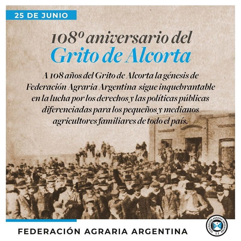 Como cada 25 de junio, quienes integramos la Federación Agraria Argentina, honramos este día la memoria de aquellas familias de pequeños y medianos productores agropecuarios que en 1912, tomaban la inédita y valiente decisión de declararse en huelga para hacer visible las condiciones de máxima precariedad en que debían desarrollar su actividad.