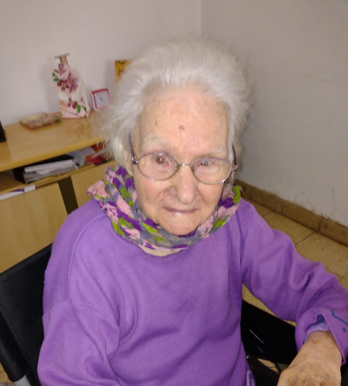 Hoy estará acompañada por los residentes del Hogar, junto a las cuidadoras con las que comparte sus días y recibirá el cariño de sus hijas Cuqui y Elsa, sus nietos y bisnietos.