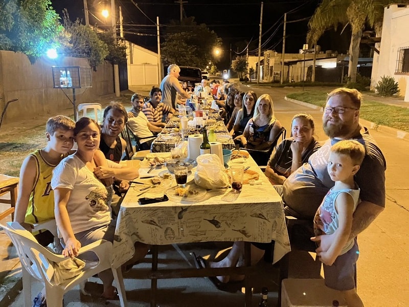 Los vecinos de calle San Lorenzo a la altura del 100, incluyendo a los que viven por Ameghino, se encontraron en la noche del lunes para pasar un lindo momento y compartir una gran mesa donde chicos y grandes disfrutaron del encuentro con un buen asado.