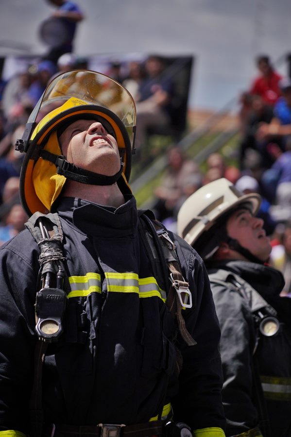 Los ejercicios, detalló, «son estandarizados y se hacen con todo el equipo que se usaría para un incendio, con un equipo de respiración. O sea, son más o menos 20 kilos de equipo cargado. Se sube en cinco pisos, se tiene que usar una manguera con una soga, se bajan, se debe golpear con un yunque para simular la entrada y romper una puerta. Hay que correr con una línea de manguera cargada con agua y hay que rescatar una víctima que es un muñeco que pesa más o menos 80 kilos. Ese ejercicio lo puede hacer una sola persona completo o se fracciona en cuatro y se hace tipo brigada. Existen categorías masculinas, femeninas, brigadas masculinas, brigadas femeninas, brigadas mixtas y existe una categoría senior que es para bomberos y bomberas de más de 40 años».